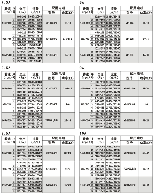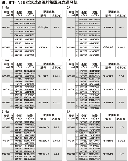 風機的性能在性能表上查閱,表中列出的性能是最高效率范圍內(nèi)的性能,按流量分為五個特點,選用時按性能表為準,出廠的風機合格品性能在額定流量下全壓值不超過+_5%。性能選用表是標準狀態(tài)下的性能,無論技術文件或定貨要求的性能均按標準狀態(tài)為準,標準狀態(tài)大氣壓=101325pa,t=20相對溫度 =50%空氣狀態(tài),當實際使用條件下與上述不符合時按有關公式進行換算,風機安裝方式可分為立式和臥式,如立式安裝在訂貨中注明,如流量,壓力安裝尺寸等性能參數(shù)有特殊要求,公司將為您另行設計生產(chǎn)。HTF(PYHL-14A)系列通風機的流量值為300攝氏度高溫空氣流量值,比平常選用HL3-2A系列風機流量值+?。?%。