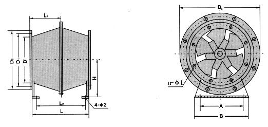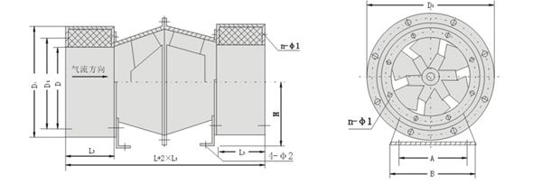 GXF系列風(fēng)機(jī)應(yīng)用斜流子午加速設(shè)計(jì)方法,采用鼓形或直行風(fēng)筒、錐形輪轂、扭曲翼形葉片結(jié)構(gòu)形式。兼有離心式風(fēng)機(jī)壓力系數(shù)較高和軸流式風(fēng)機(jī)流量系數(shù)較大的特點(diǎn),具體有噪聲的是、耗電省、結(jié)構(gòu)緊湊等優(yōu)點(diǎn),臥式、立式安裝均可。
